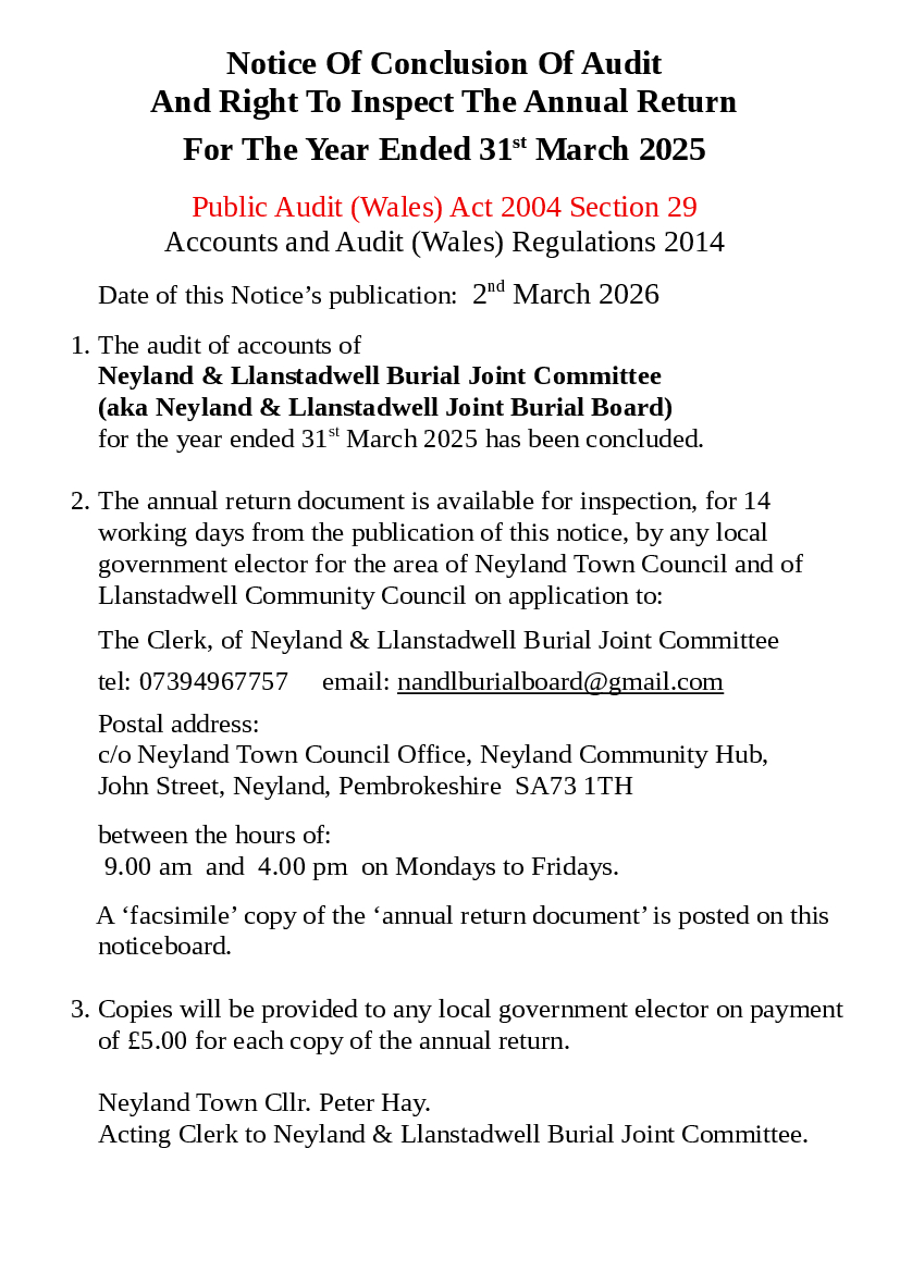 antisocial incident to the Police. Statistically Neyland has a very low level